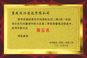 • 华润集团华西大区2019年第二季度质量摸底检查华西大区第五名
